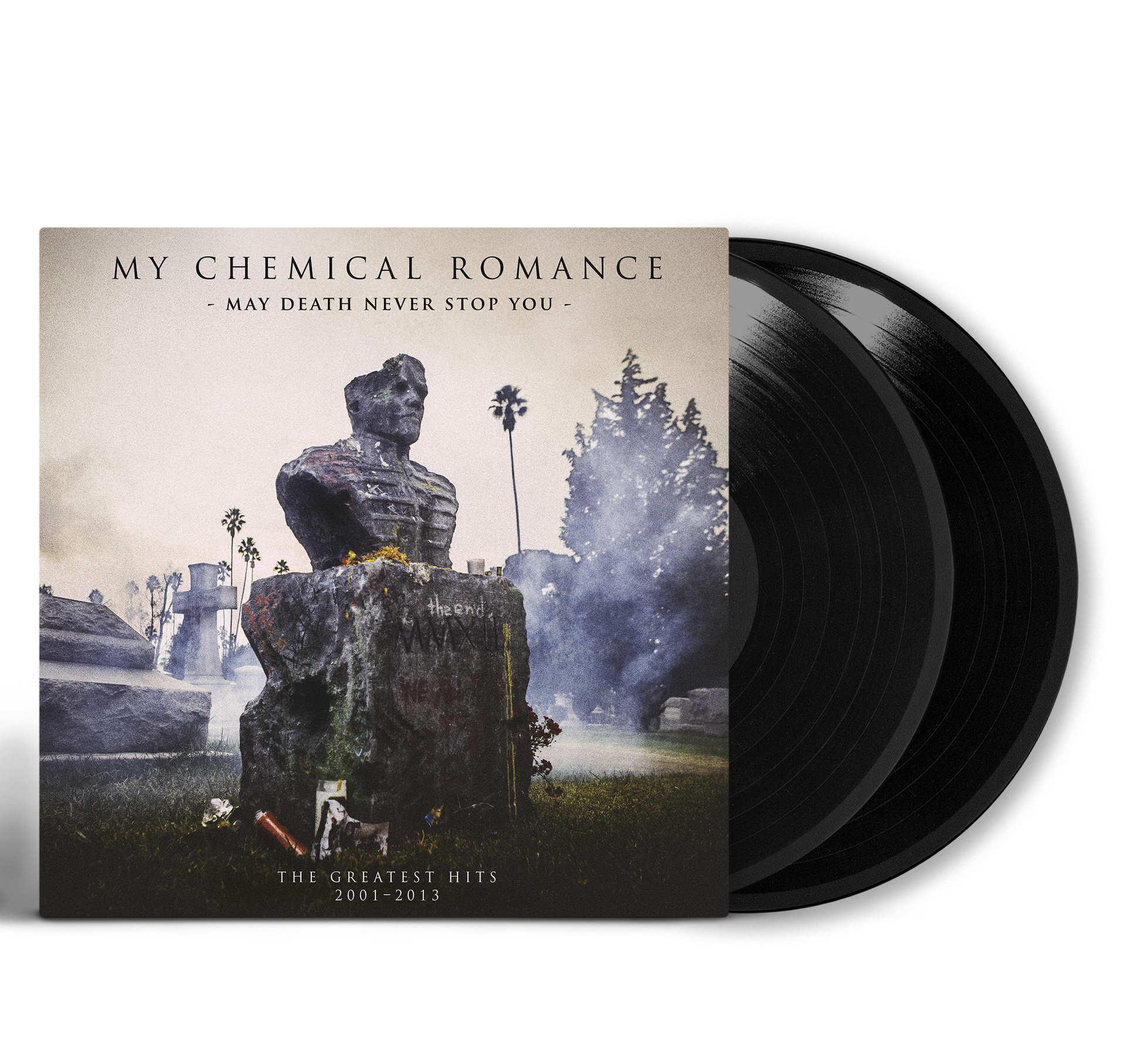 My Chemical Romance originally released May Death Never Stop You in 2014. It is a 2-LP, 19 track, Greatest Hits compilation and includes "Welcome To The Black Parade", "Helena", "I'm Not OK (I Promise)" and "Teenagers". It spans MCR's career from 2001 to 2013 including tracks from each of the band's four studio albums, plus "Fake Your Death" (a track only found on this compilation), and three of the legendary "Attic" demos.