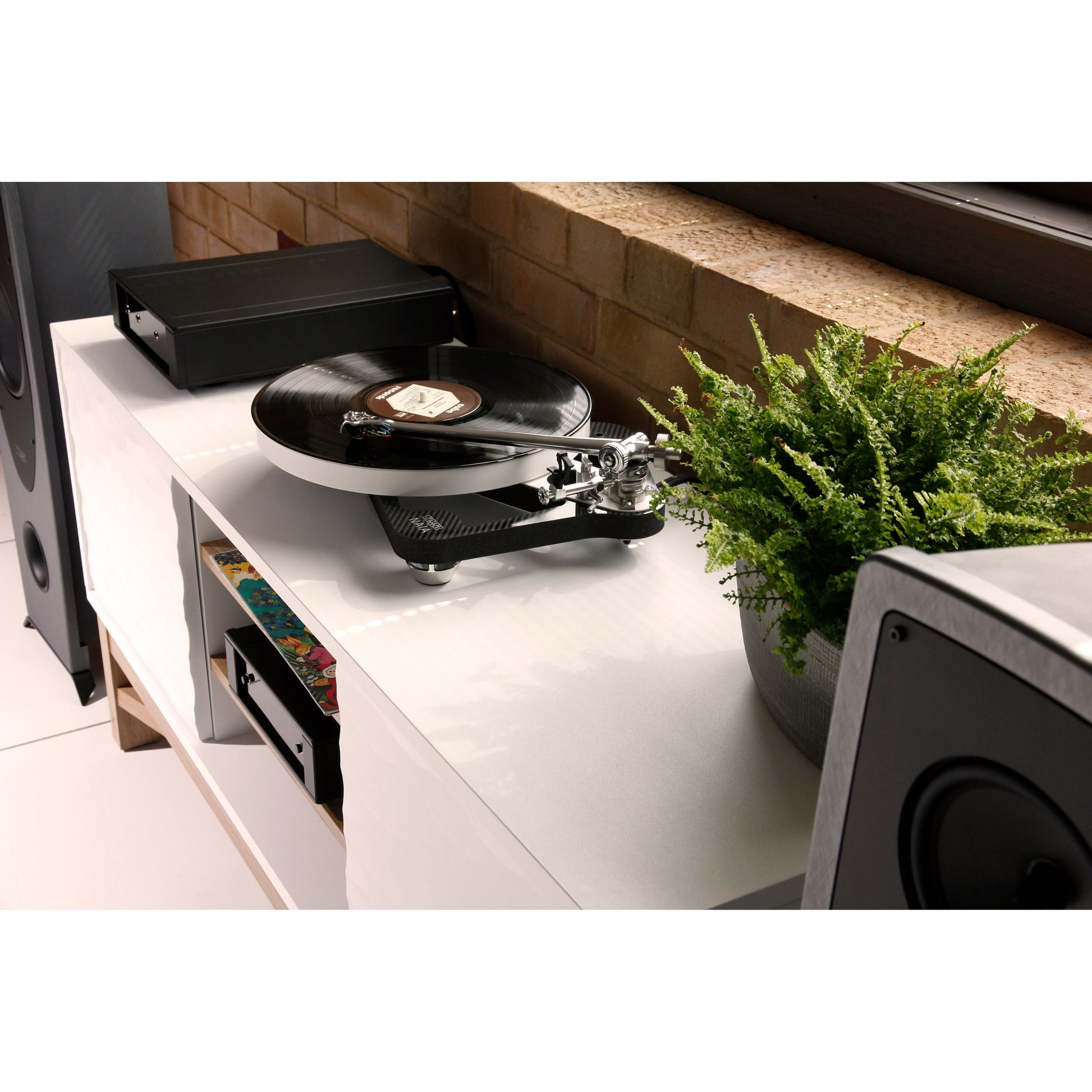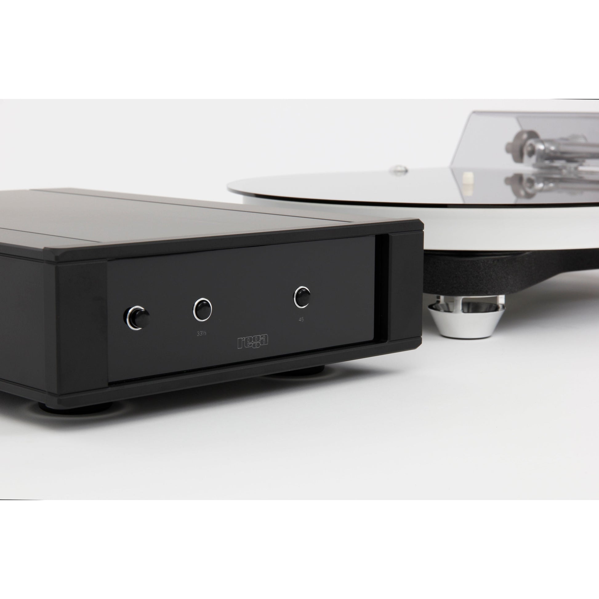 This reference level turntable takes Rega's pioneering low mass high rigidity plinth technology to the next level by using a graphene-impregnated carbon fibre skeletal plinth with Tancast 8 foam core.